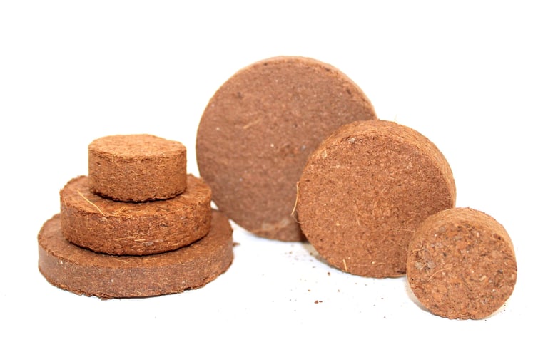 Compressed cocopeat blocks made from 100% natural coir substrate. Expand with water to create a rich, well-aerated growing medium.